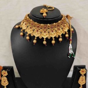 Rajwadi Polish Broad Choker, Jhumka Earring with Maang tikka Bridal & Semi- Bridal Set