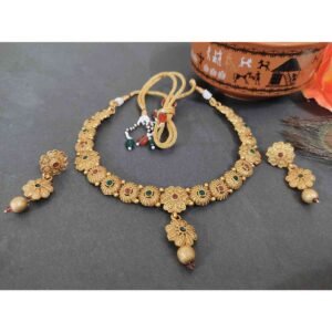 Rajwadi Flower Design Trendy Choker and Earrings Set