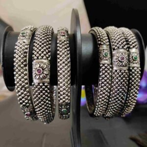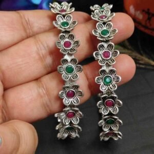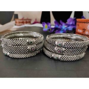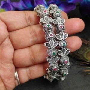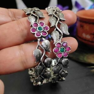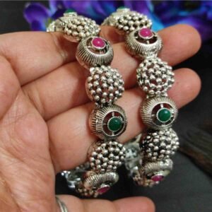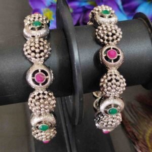 Maroon and Green Stone Oxidised Bangles Set of 2