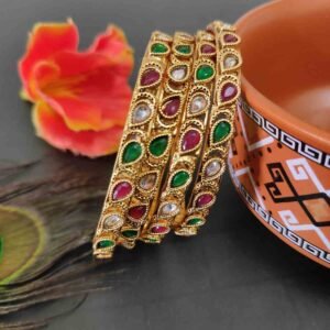 Maroon and Green Stone Oxidised Bangles Set of 2
