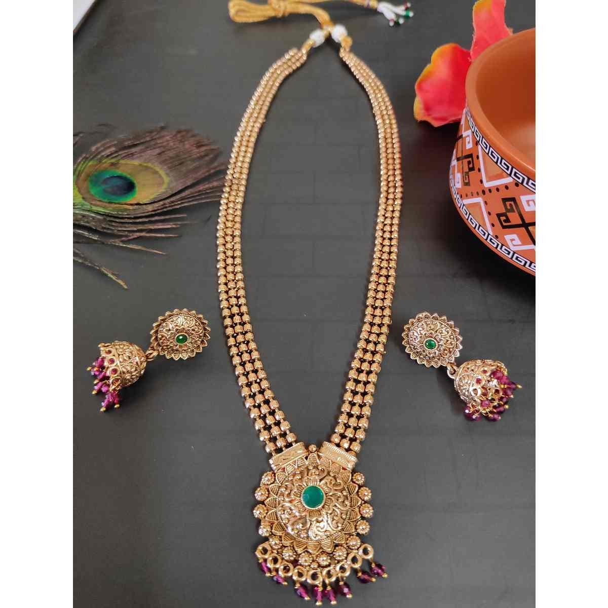 24inches Ruby and Green Stone Long haar for Women