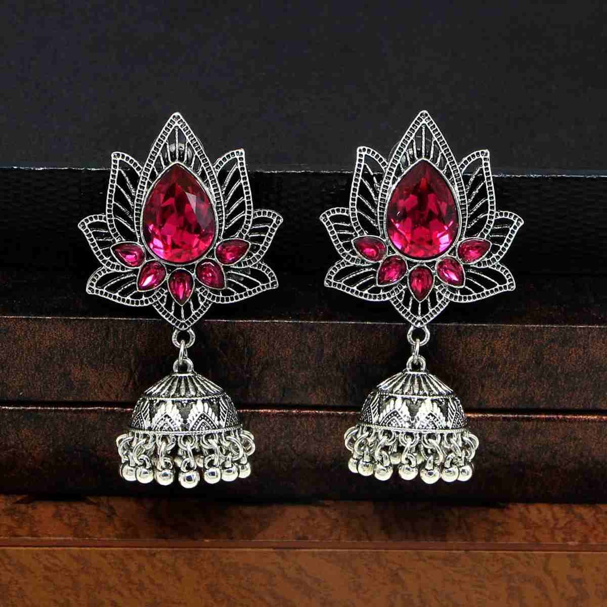 Big Size Lotus Design Purple Crystal Earring