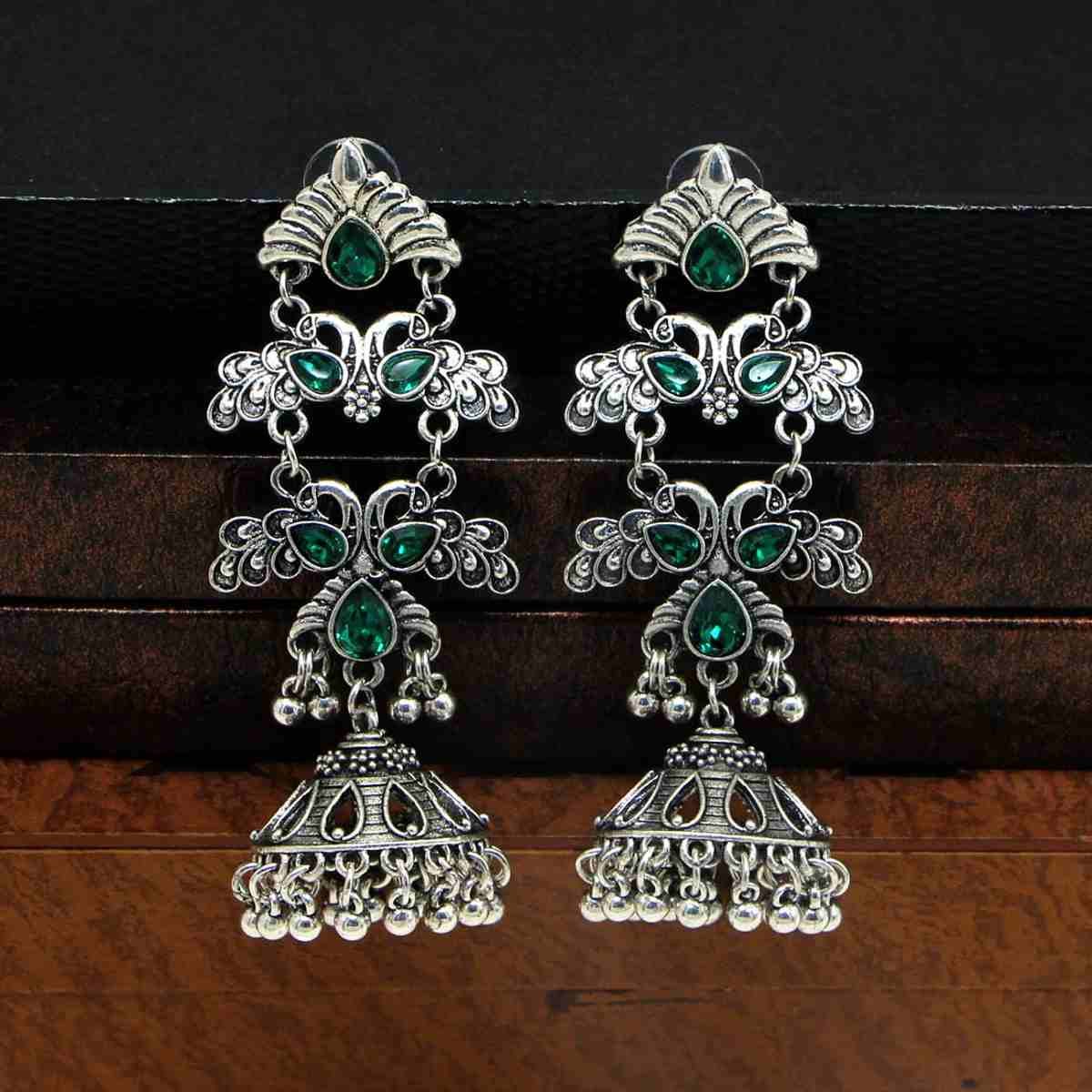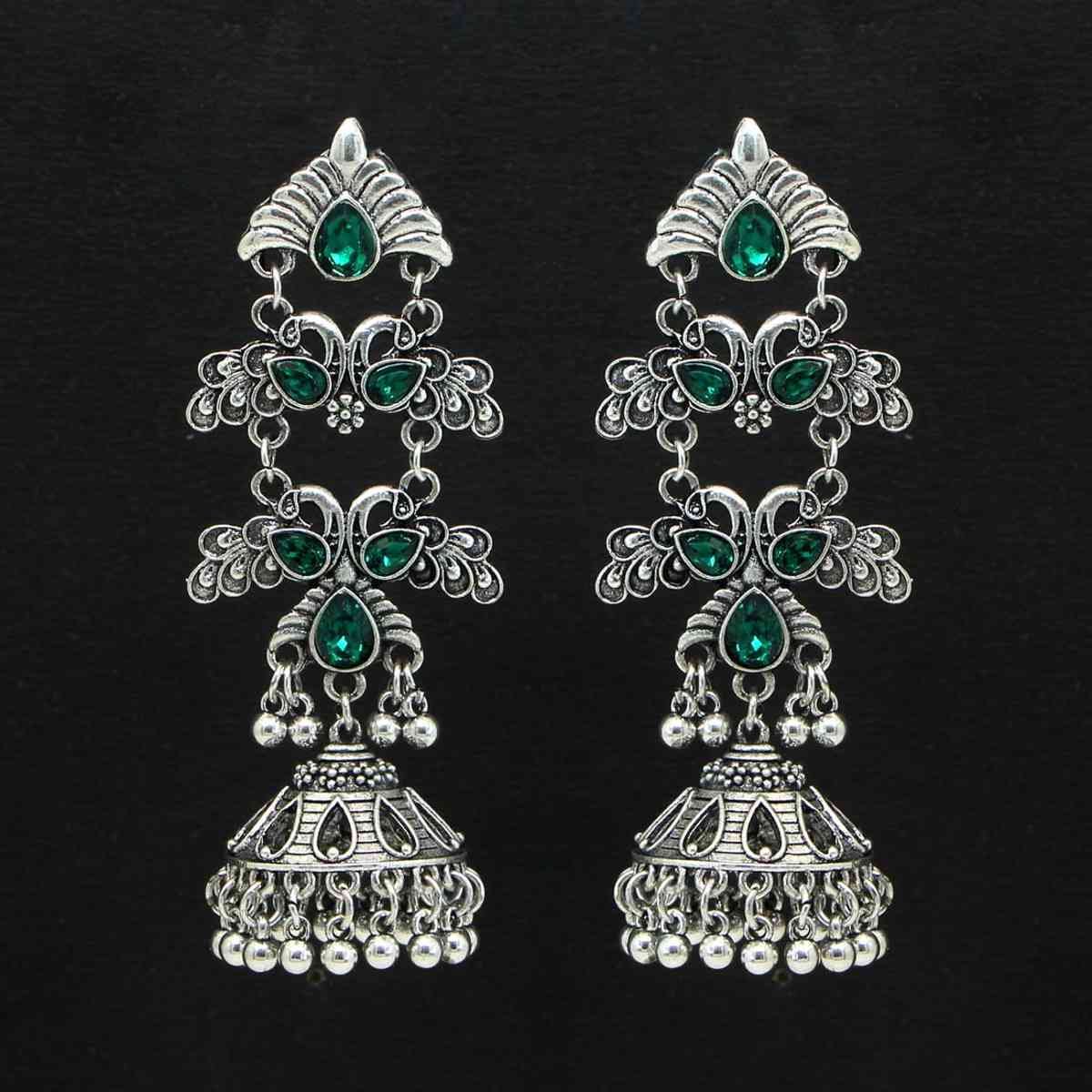 Green Crystal Peacock Big Jhumka Earrings