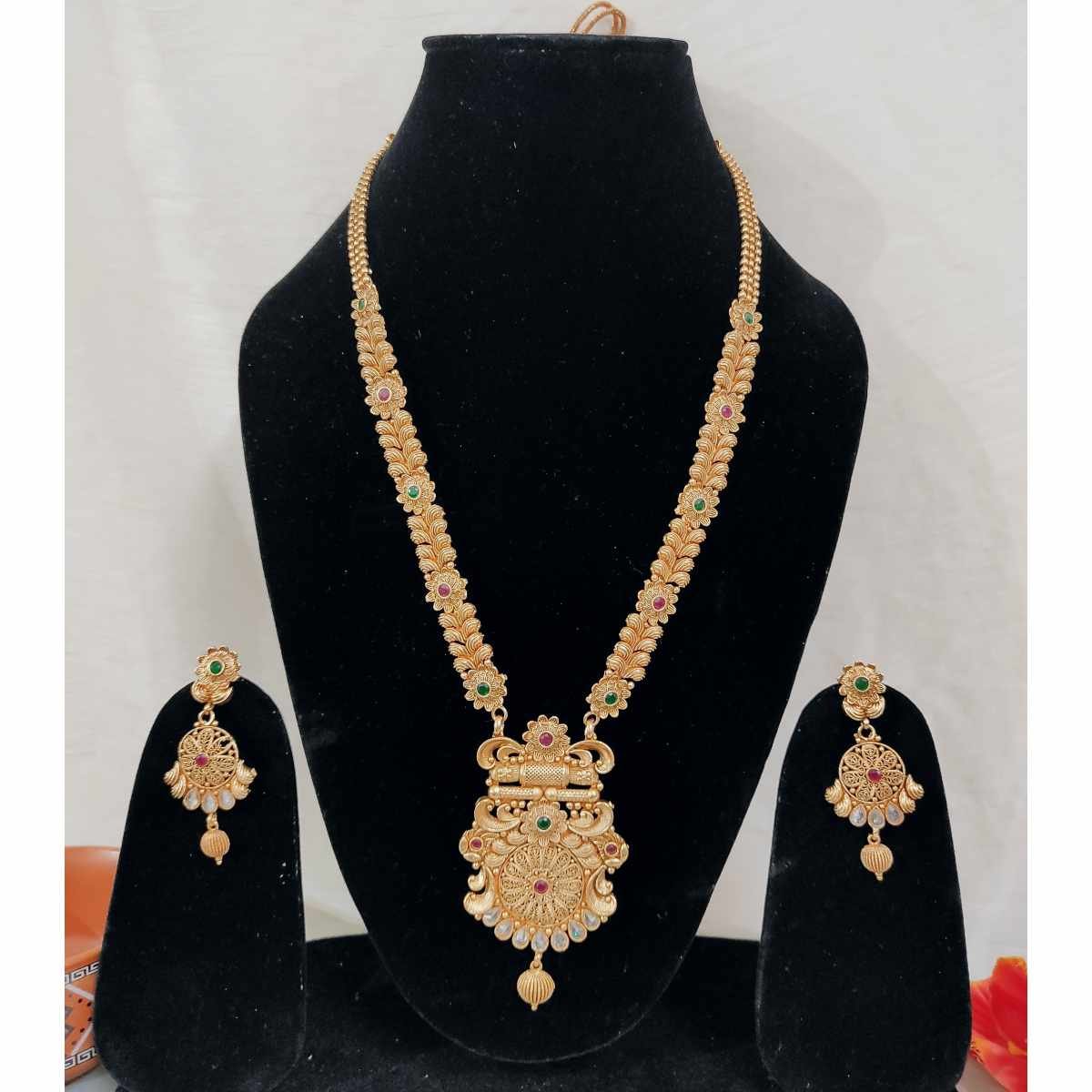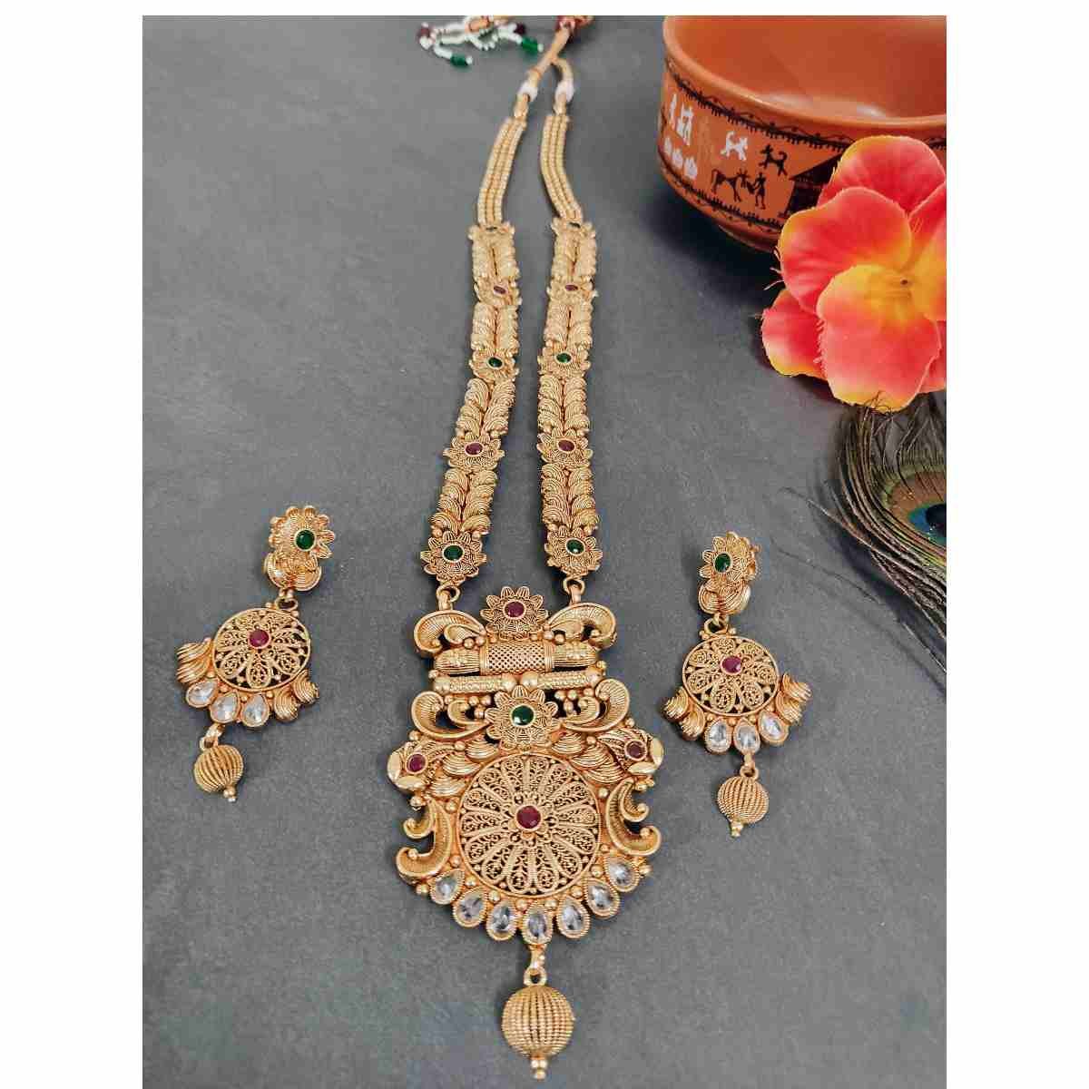 Highest Quality Rajwadi Polish & Stones Long Haar / Haram Necklace and Earring Set