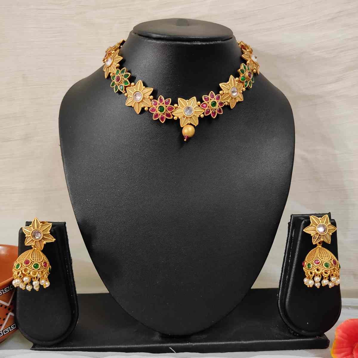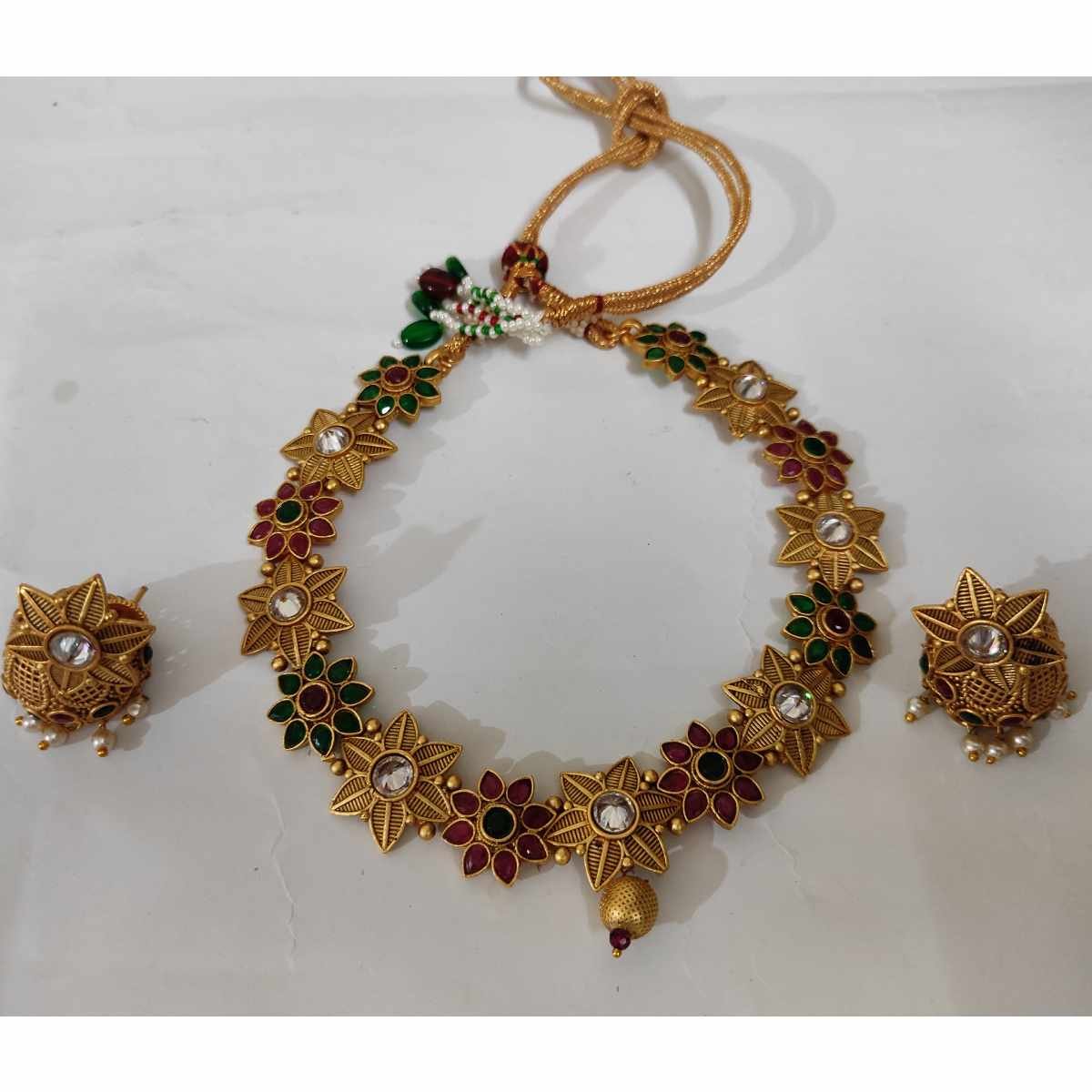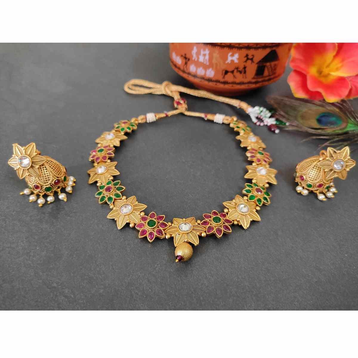Latest Rajwadi Ruby,Green,American Diamond Choker Necklace and Jhumka Earring Set