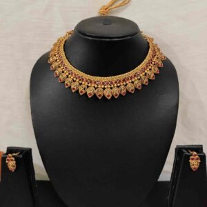 Unique Design Red Stone Rajwadi Choker Necklace and Stud Earring Traditional Jewllery Set