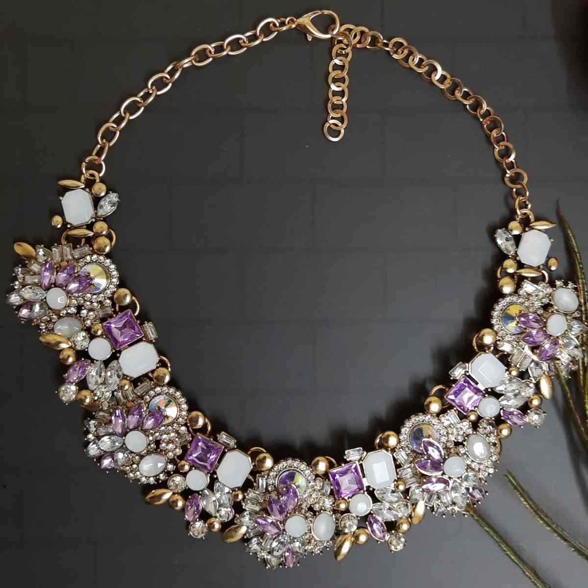 Swanky Diva Luxurious Stylish Antique Exclusive Enshrine Statement Classic Trendy Highly Rhodium Plated Zinc Multicolor Crystal Stone Choker Neckpiece for Women and Girls.