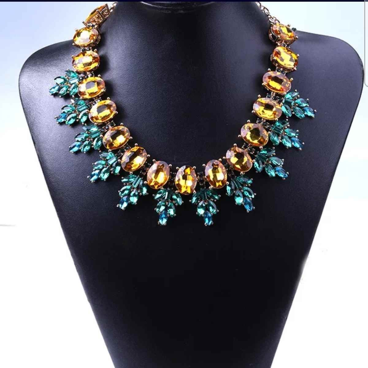 Swanky Diva Enshrine Statement Yellow Blue White Crystals Highly Rhodium Plated Online Contemporary Fashion Necklace for Women and Girls