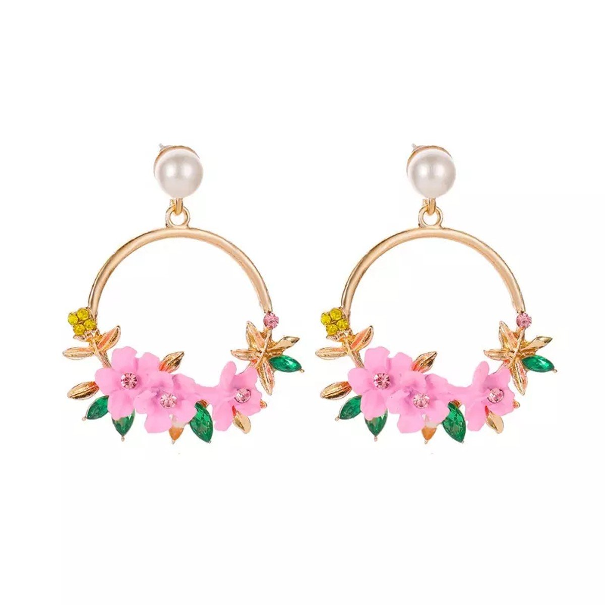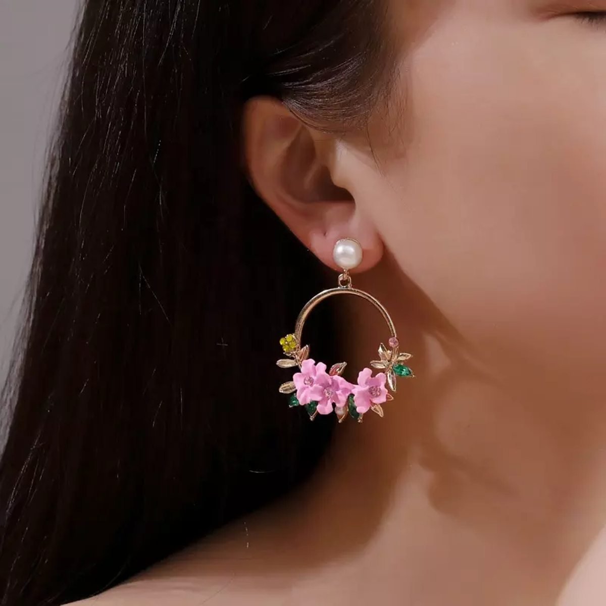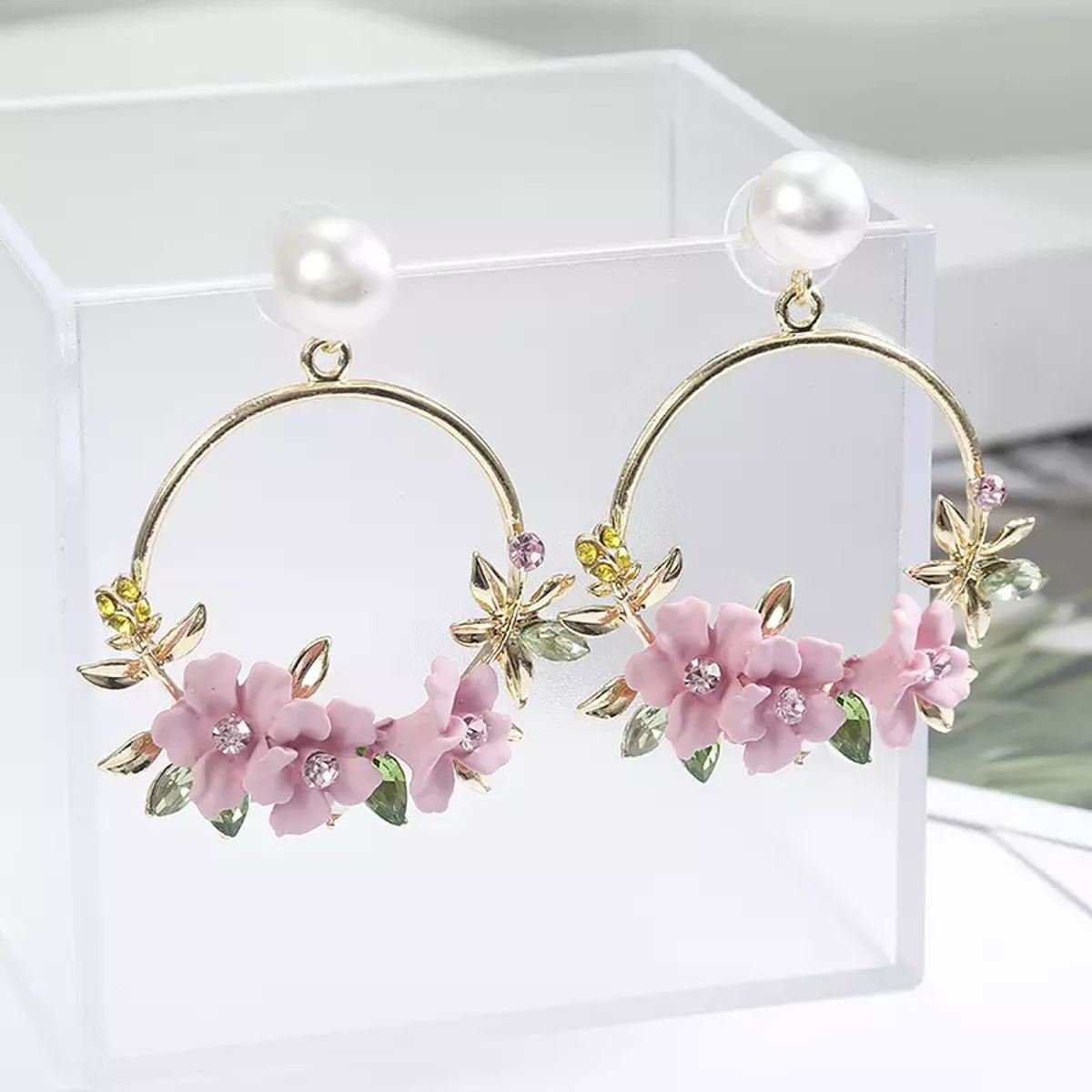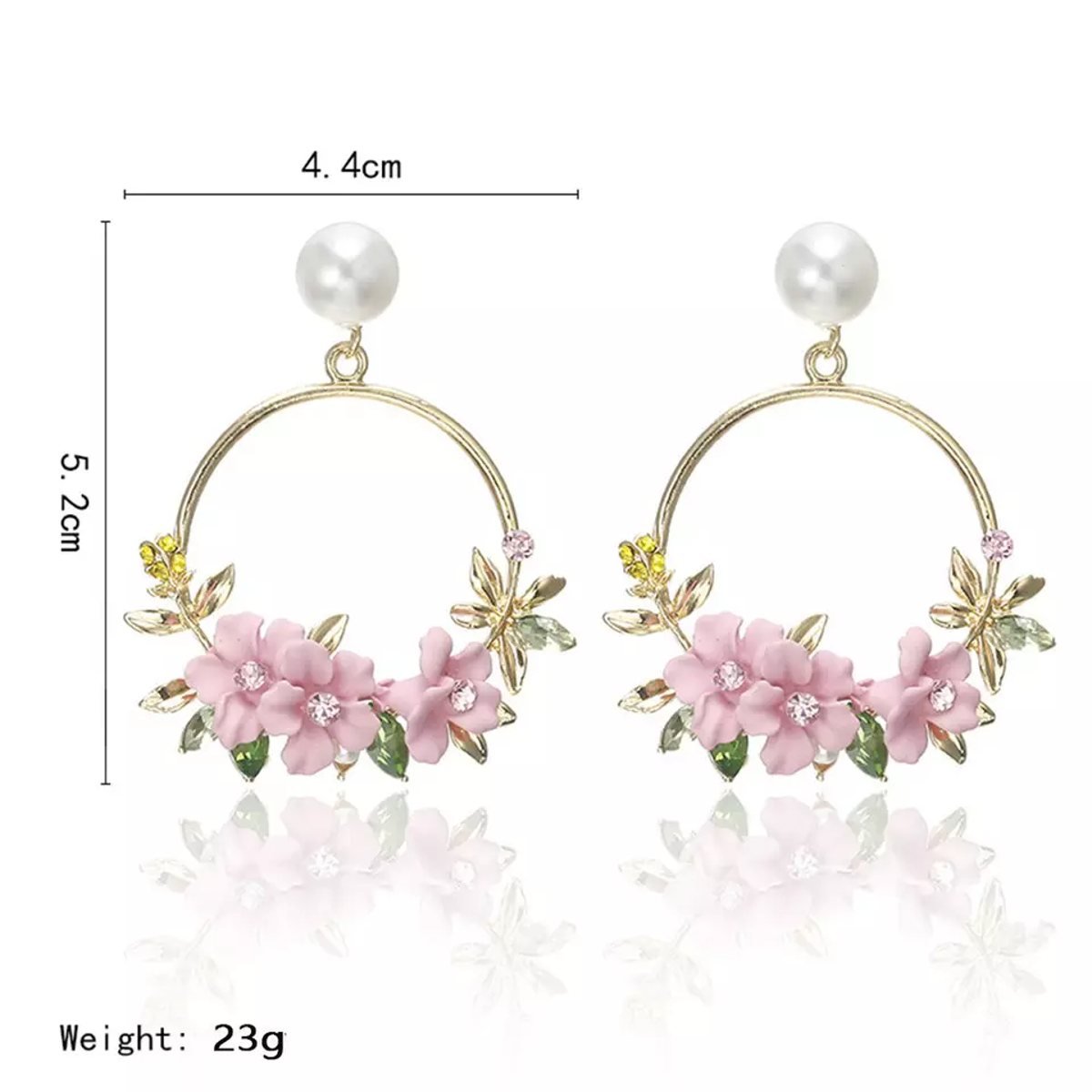Swanky Diva Gold Plated Pink Floral Earrings for Girls and Women