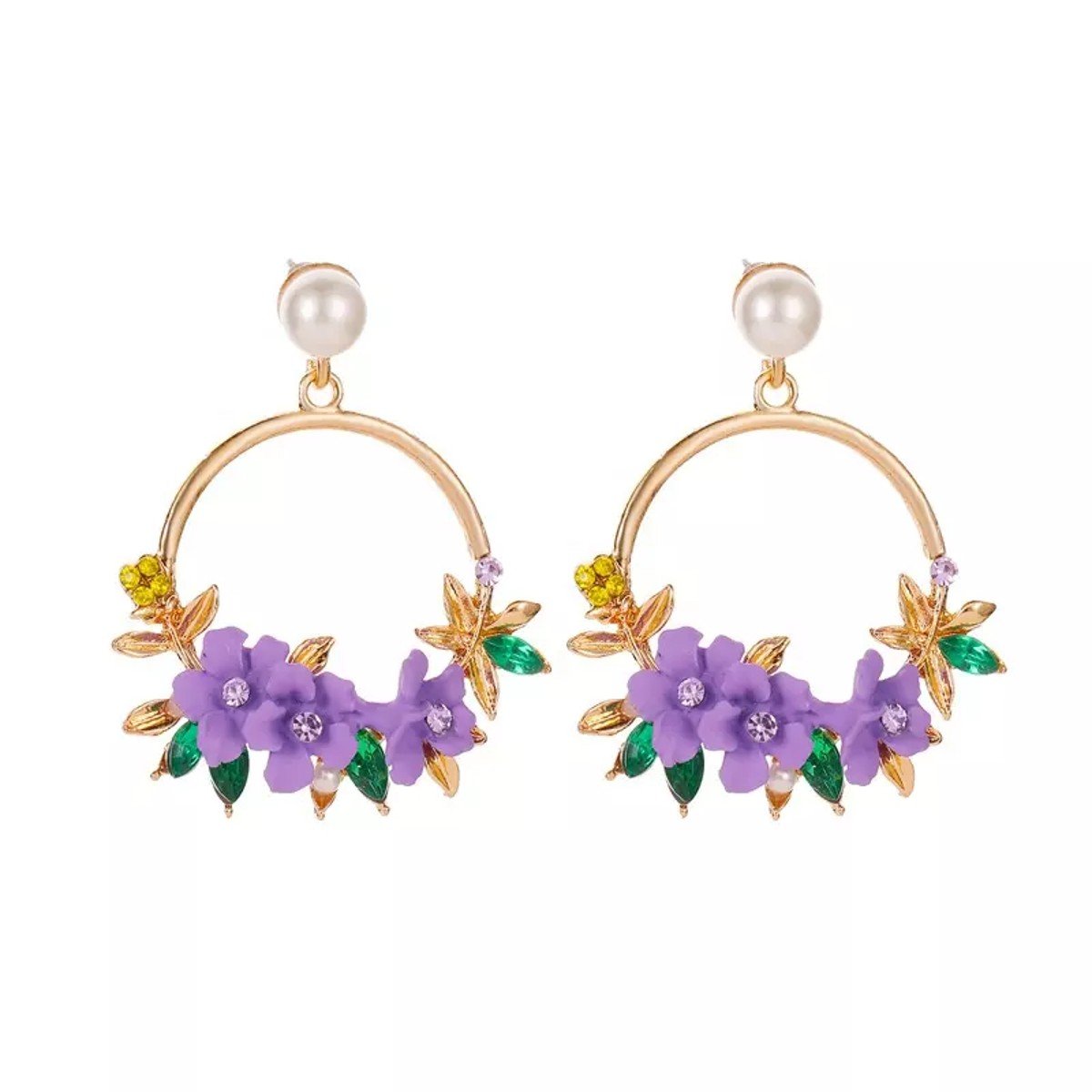 Swanky Diva Gold Plated Purple Floral Earrings for Girls and Women