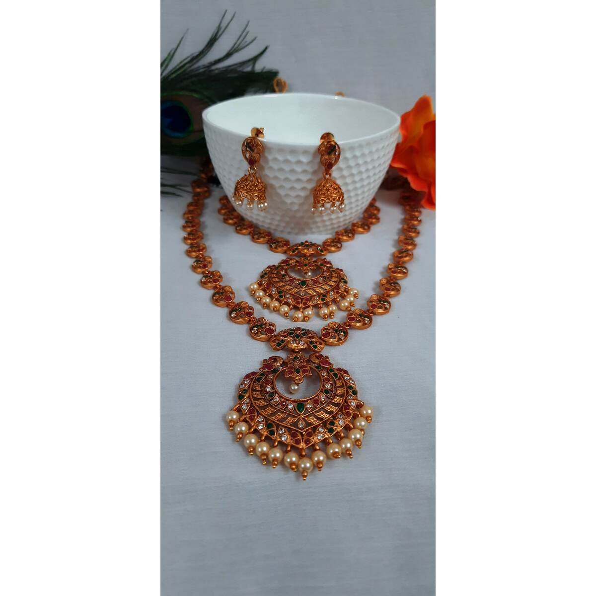 Be the first to review “Temple South Indian Choker & haram Necklace Earring Combo”