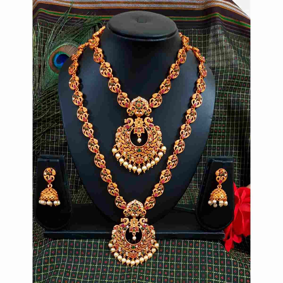 Temple South Indian Choker & haram Necklace Earring Combo