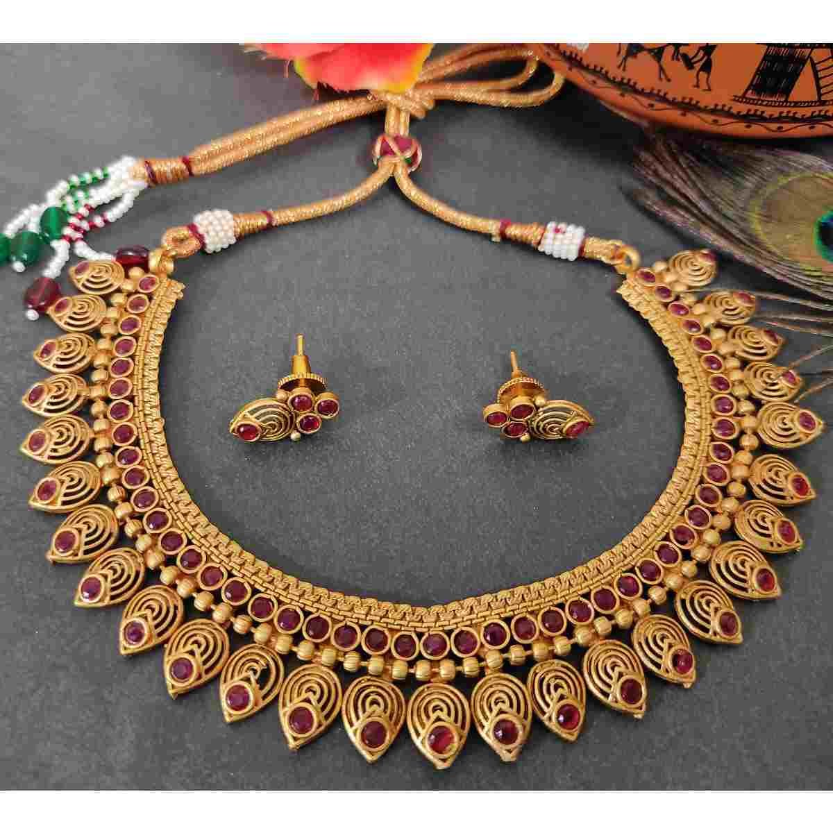 Unique Design Red Stone Rajwadi Choker Necklace and Stud Earring Traditional Jewllery Set